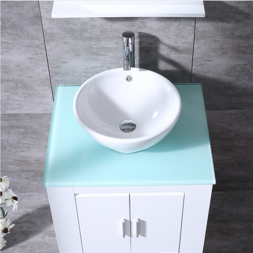 Thick Tempered Glass Countertop - The clear tempered glass countertop increases the overall texture, and is easier to maintain and clean than the ordinary ceramic countertop, and it will not to turn yellow after long-term use.