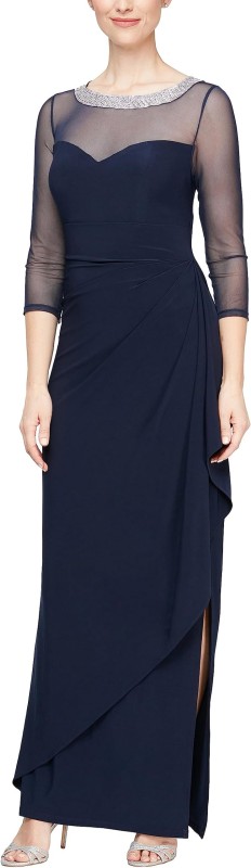 Alex Evenings Women's Long Shift Dress Illusion Neckline (Petite and Regular)