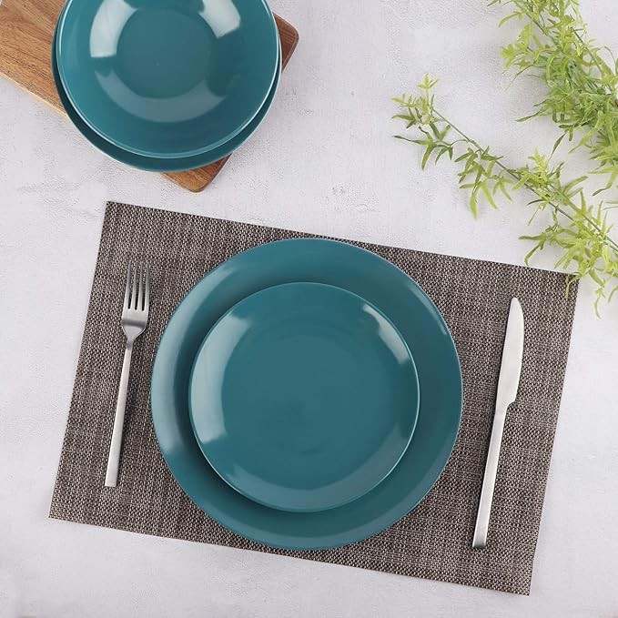Amazon Basics 18-Piece Stoneware Dinnerware Set - Deep Teal, Service for 6