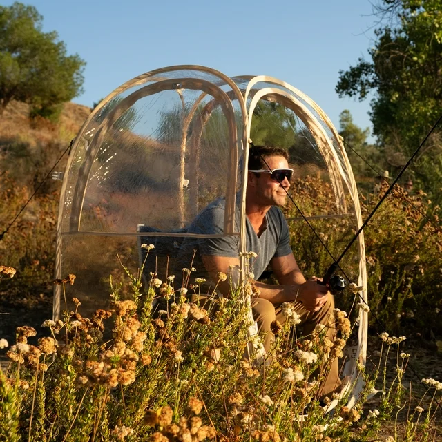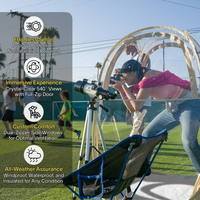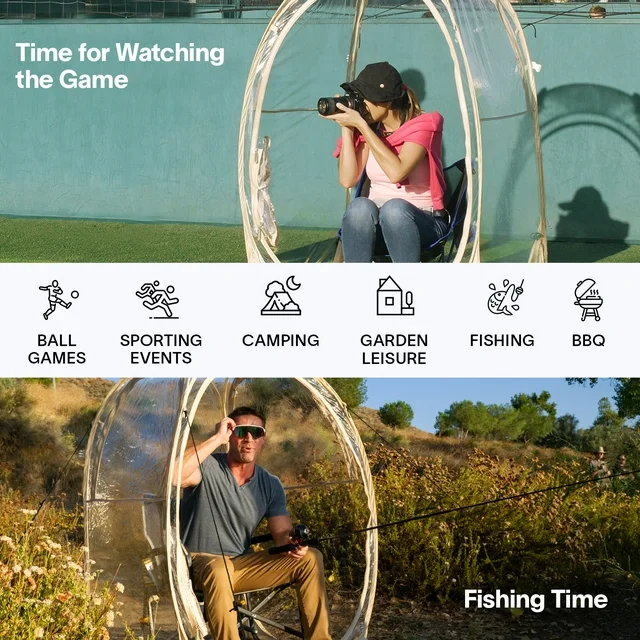 Super clear 4 side view: this sports tent measures 40"x40"x62"H, bigger than similar products and comfortably fits 1 tall adult sitting inside. Made of super transparent PVC, it allows a clear, 540-degree view. Perfect for catching all outdoor sports action including football, baseball, soccer, lacrosse or for hobbies including fishing, photography, outdoor movies etc. Fully transparent PVC roof is perfect for night view and will make sure you don't miss any of those special moments!