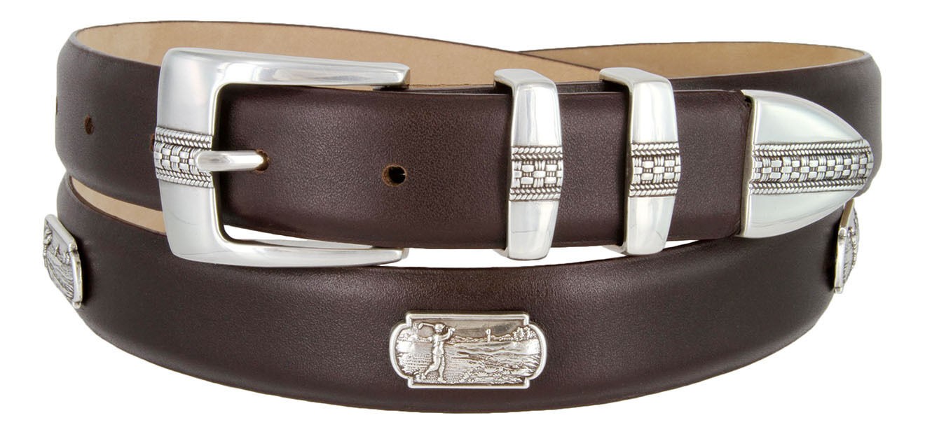 Golf of Scottsdale Men's Leather Italian Calfskin Concho Dress Belt 1-1/8" Wide