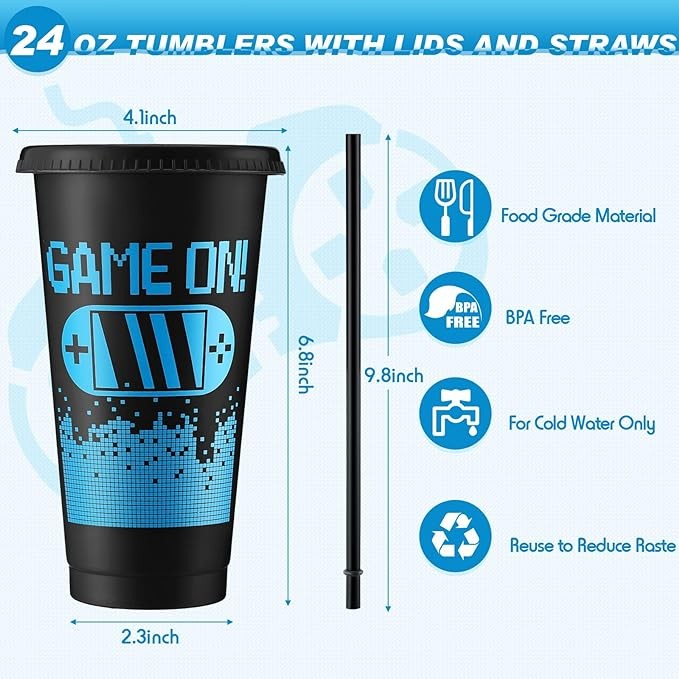 • Widely Applicable: these 24 oz plastic cups with lids are funny, can be applied for birthday parties, video game themed parties and more, which will create a strong happy atmosphere and leave your guests unforgettable memories