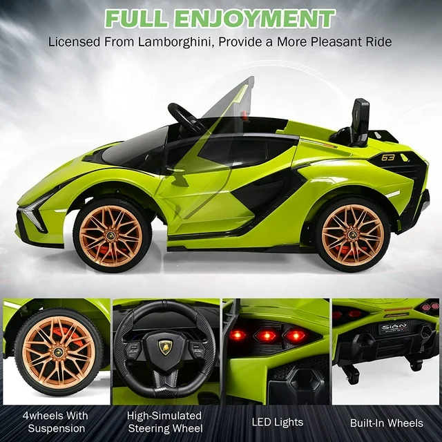 • ?LICENSED BY LAMBORGHINI: Italian Lamborghini licensed ride on car, scaled down according to Lamborghini real car. From Lamborghini’s design concept, details determine quality. High appearance level ride on toy car with full functions. Adopts the mechanical arm of automobile manufacturing industry to spray evenly, so that the bright paint surface does not fade.