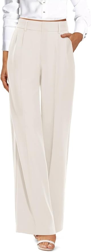 Unique design: Metal buckle closure with zip fly,high waisted, back elastic waist, two side pockets, pleated front,wide leg,loose fit,casual style, workout pants.