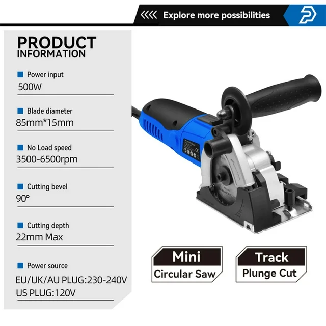 Prostormer 3-3/8 inch mini circular saw features a compact, lightweight design that makes it easy to operate. Designed with 4.2 Amp motor and 3500-6500 RPM variable speed for handling applications. This electric mini saw cleanly cut through wood, soft metal, plastic and other materials without burning or melting.