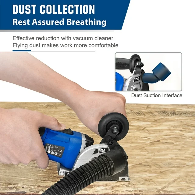 [Ergonomic & Safe Design] - Soft rubber handle and auxiliary side handle offer more control and less fatigue.Also designed with a dust port and the saw dust pipe, you can connect it to your vacuum to get a clean working environment. The blade can only be pushed out when you press the power switch, safe for use.