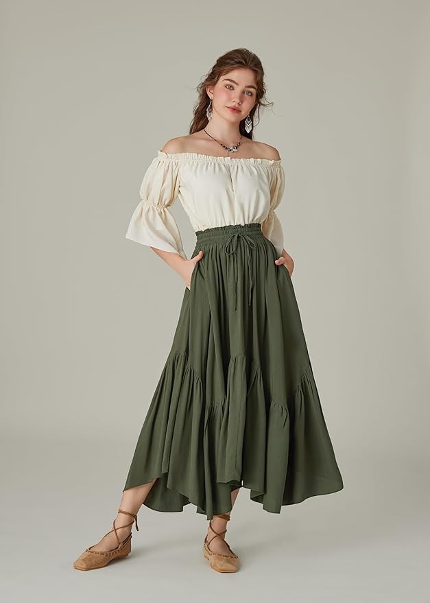 • 【Occasion】Long maxi skirts for women are suitable for party,summer beach, vacation ,Renaissance faire, pirate costume or casual wear
